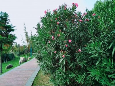夾竹桃的葉片如柳似竹,紅花灼灼,勝似桃花,花冠粉紅至深紅或白色,有特殊香氣,花期為6-10月,是有名的觀賞花卉。 夾竹桃的花有香氣?;虚L在枝條的頂端,它們聚集在一起好似一把張開的傘。夾竹桃花的形狀像漏斗,花瓣相互重疊,有紅色、黃色和白色三種,其中,紅色是它自然的色彩,“白色”、“黃色”是人工長期培育造就的新品種。