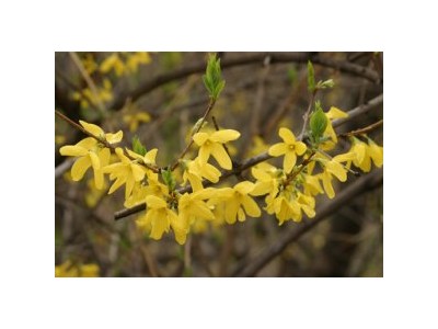 連翹(學名:Forsythia suspensa (Thunb.) Vahl ):落葉灌木,香港俗稱一串金,是木犀科連翹屬植物。連翹早春先葉開花,花開香氣淡艷,滿枝金黃,艷麗可愛,是早春優(yōu)良觀花灌木,株高約3米,枝干叢生,小枝黃色,拱形下垂,中空。葉對生,單葉或3小葉,卵形或卵狀橢圓形,緣具齒?;ü邳S色,1-3朵生于葉腋;果卵球形、卵狀橢圓形或長橢圓形,先端喙狀漸尖,表面疏生皮孔;果梗長0.7-1.5厘米?;ㄆ?-4月,果期7-9月。