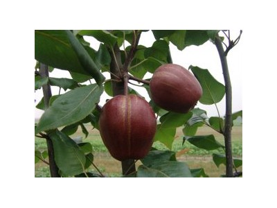 二、樹下管理 土壤管理主要是生長(zhǎng)期樹盤覆草、松土、鋤草。結(jié)合晚秋施有機(jī)肥,逐年向外深翻擴(kuò)穴,使土壤疏松透氣,有利于根系的生長(zhǎng)發(fā)育。全年共施肥4次。基肥一般在10月下旬、11月上旬施入,第1年株施農(nóng)家肥50公斤或腐熟雞糞20公斤,以后逐年增多。發(fā)芽前、落花后各追一次氮肥,6月中旬追施復(fù)合肥。結(jié)合病蟲害防治在生長(zhǎng)季前期葉面噴0.3%尿素2~3次,6月份以后噴0.2%磷酸二氫鉀2~3次,以補(bǔ)充樹體養(yǎng)分,增強(qiáng)樹勢(shì)。 早酥紅梨是早酥梨芽變品種;早熟,幼樹生長(zhǎng)直立茁壯,單枝生長(zhǎng)量大,枝條萌牙力強(qiáng),短枝多發(fā)育好,易形成成串花芽.早酥梨在南方種植,7月上中旬成熟,北方7月底至8月初果實(shí)成熟。通常3年始果,以短果枝結(jié)果為主,有腋花芽?;ㄐ蜃矢?,單果重200—250克,大者350克。早酥紅梨表現(xiàn)生長(zhǎng)茁壯,抗性強(qiáng),結(jié)果早,果實(shí)高樁形,個(gè)大,成熟早,品格優(yōu)質(zhì)。本梨果中含有天然珍貴的紅色素和紫色素!紅色素紫色素具有天然的健康美容等功效!具有獨(dú)特的抑制癌細(xì)胞生長(zhǎng)和抗癌等功極好的觀賞價(jià)值,生態(tài)觀光果園的首選品種!棗酥紅梨苗