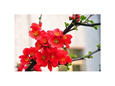二、形態(tài)特征:落葉灌木,株高2-3米枝外展,無毛,具直制。單葉互生;托葉腎形或半月形;葉片草質(zhì),卵形至橢圓形、長橢圓形,葉端尖,基部楔形,邊緣有尖銳鋸齒?;ㄏ热~開放,3-5朵簇生枝上,花枝短粗;萼筒鐘狀,頂端5裂;花瓣5,淡紅色或白色;雄蕊多數(shù);花柱5,基部合生,子房下位,5室。梨果卵形,木質(zhì),外皮光滑,黃色或黃綠色,具芳香。種子扁平,長三角形棕褐色。花期3-4月,果期5-10月。