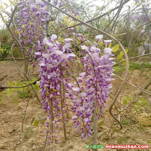 紫藤為長壽樹種,民間極喜種植,成年的植株莖蔓蜿延屈曲,開花繁多,串串花序懸掛于綠葉藤蔓之間,瘦長的莢果迎風搖曳,自古以來中國文人皆愛以其為題材詠詩作畫。在庭院中用其攀繞棚架,制成花廊,或用其攀繞枯木,有枯木逢生之意。還可做成姿態(tài)優(yōu)美的懸崖式盆景,置于高幾架、書柜頂上,繁花滿樹,老樁橫斜,別有韻致。