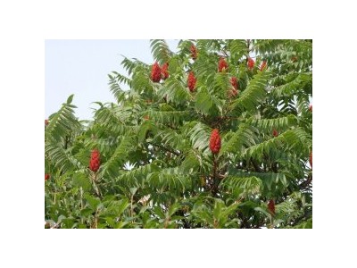 火炬樹屬落葉喬木,火炬樹形為長圓形至披針形。直立圓錐花序頂生,果穗鮮紅色。果扁球形,有紅色刺毛,緊密聚生成火炬狀。果實(shí)9月成熟后經(jīng)久不落,而且秋后樹葉會變紅,十分壯觀。原產(chǎn)歐美,常在開闊的沙土或礫質(zhì)土上生長?;ㄆ?~7月,果期8~9月。