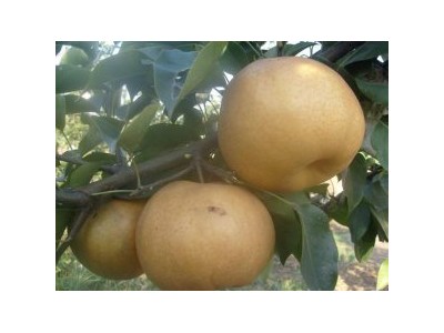 果實性狀:果實扁圓形;果實大型,平均單果重415克,果個過大者或樹勢衰弱時果形不正。果皮黃褐色,果點較小,中密,果面較光滑。套袋果果皮淡黃色,果點不明顯。果肉白色,肉質(zhì)細(xì)脆,汁多,石細(xì)胞少,可溶性固形物含量12.0%~16.0%,味酸甜可口,有類似二十世紀(jì)梨的香味,品質(zhì)上。成熟極晚,10月中下旬成熟,耐貯性極強。
