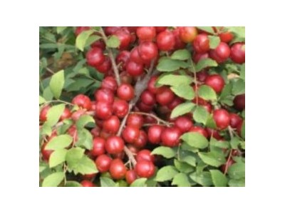 鮮食品種,株高0.3-0.5M,花粉紅色,平均果重6克,縱橫徑177-223cm,果實扁圓至圓形,外觀紅色至或暗紅色,果肉紅色厚、脆、硬,味甜,無澀味,汁少,離核,座果率高,9月上旬成熟,可食率達到94%,豐產(chǎn),4年生果樹株產(chǎn)可達到0.8公斤,畝栽600株以上。適應土壤為PH7.0-8.0,植株抗黃化。