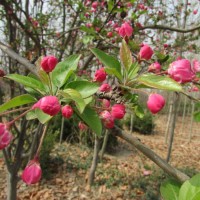 【北美海棠園林應(yīng)用】北美海棠的觀賞價值很高,花色、葉色、果色和枝條色彩豐富。加之其不同季節(jié)中花、葉、果、枝和多姿的形態(tài)所突顯出來的景觀使觀賞期整年持續(xù),所以,北美海棠成為北方氣候條件下園林植物材料中的一組特色產(chǎn)品。