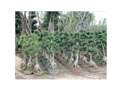 人參榕盆景:由于人參榕貌像寓意長(zhǎng)壽的人參,因此近年甚受歡迎。它基部膨大的塊根,實(shí)際上是其種子發(fā)芽時(shí)的胚根和下胚軸發(fā)生變異突變而形成的。有的植株還在其干基部嫁接了金錢榕或卵葉榕(細(xì)葉榕的一個(gè)變種),顯得更為高雅。