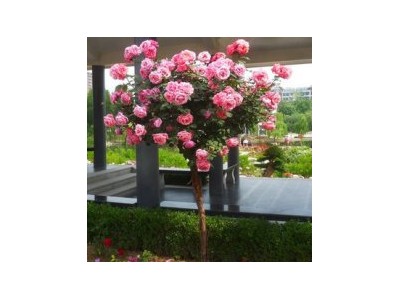 樹狀月季 它是通過兩次以上嫁接手段達到標(biāo)準的直立樹干、樹冠。