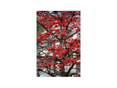 木棉,屬木棉科,落葉大喬木,原產(chǎn)印度。高10~20 公尺。樹干基部密生瘤刺,枝輪生,葉互生。每年2~3月份先開花,后長葉。樹形高大,雄壯魁梧,枝干舒展,花紅如血,碩大如杯,盛開時葉片幾乎落盡,遠觀好似一團團在枝頭盡情燃燒、歡快跳躍的火苗,極有氣勢。因此,歷來被人們視為英雄的象征。