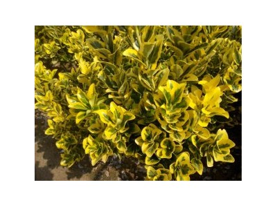 金鑲玉黃楊(原名金冠黃楊),衛(wèi)矛科,衛(wèi)矛屬,北海道黃楊芽變品種,葉片油亮肥厚,葉片芯呈翠綠色,周圍環(huán)包金黃色,遠(yuǎn)遠(yuǎn)望去金黃一片,冬季不落葉,霜雪天亦可保持這種色彩,非常美麗。