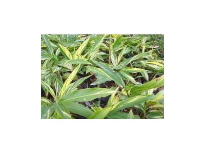 識別特征:常綠草本觀葉植物。高1—2米,盆栽高度多在l米以下。它根莖橫 生,肉質(zhì)。葉革質(zhì),有短柄,短圓狀披針形;長約30—80厘米、寬15—20 厘米;葉面深綠色,并有金黃色的縱斑紋、斑塊,富有光澤。圓錐花序下垂,苞片白色,邊緣黃色,頂端及基部粉紅色,花彎近鐘形,花冠白色,花期夏季。