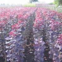 信息描述: 美國紫葉紅櫨又名紅葉樹、煙樹,原產(chǎn)美國。春季其葉片為鮮嫩的紅色或紫紅色,有金屬光澤,嫩葉鮮紫,夏季黑紫,春、夏、秋三季葉色穩(wěn)定,景觀壯麗,觀賞性極強?;ǘ?,花期長,盛夏時節(jié),開始開花,雜性,圓錐花序密生,有暗紫色毛,于枝條頂端花序絮狀鮮紅,遠看如火似霧。美國紫葉紅櫨根系發(fā)達,生長迅速,對環(huán)境適應(yīng)性強,對土壤要求不嚴,耐-29℃低溫,又耐干旱,耐貧瘠,輕鹽堿地也可生長,喜光又耐蔭,紅櫨葉片對二氧化硫有較強的吸附能力,治理環(huán)境污染的作用。美國紫葉紅櫨的色彩及生長特性等方面都要優(yōu)于紅葉小檗、紅花檵木、紫葉李等國內(nèi)紫葉類品種,可以用作綠化色塊、彩色墻;也可以修剪成大小不同的彩色球;植于草坪、路帶尤其是作為高速公路兩側(cè)的防眩木,效果良好;同時美國紫葉紅櫨還可以成小喬木用作行道樹,用于荒山綠化等,用途十分廣泛。是優(yōu)良的園林彩葉樹種。