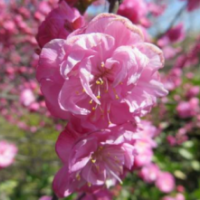 屬于觀賞桃花類的半重瓣及重瓣品種,統(tǒng)稱為碧桃。華東地區(qū)碧桃花期是3月~4月,花朵豐腴,色彩鮮艷豐富,花型多。常見的品種有紅花綠葉碧桃、紅花紅葉碧桃,白紅雙色灑金碧桃等多個變種。碧桃具有很高的觀賞價值,在小區(qū)、公園、街道隨處可見的美麗植物。