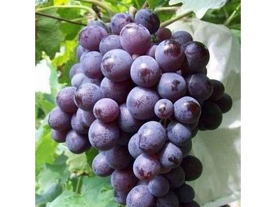 又名麝香葡萄(Muscat),莫斯佳,漢堡麝香,穆斯卡特,慕斯卡,麝香馬斯卡特,紫玫瑰香,紫葡萄等。歐亞種,原產(chǎn)英國,1860年英國人斯諾用亞歷山大×黑罕雜交而成,是一個古老的品種,是世界上著名的鮮食、釀酒、制汁的兼用品種。世界上種植面積分布很廣,特別是歐洲各國種植很多。我國于1871年由美國傳教士倪氏首先引入山東煙臺,1892年又從西歐引 入,是我國分布最廣的品種之一,各主要葡萄產(chǎn)地均有栽培,而且都有一套較完整的栽培管理技術(shù),同時它還是一種著名釀酒葡萄。目前仍是北京、天津、河北、山東等地主栽品種。在山東葡萄基地,玫瑰香葡萄仍為主栽品種。果實(shí)性狀: 果穗中等大,圓錐形。...穗重1000克左右,平均穗重350~403克。果粒著生疏松至中等緊密。果粒橢圓形或卵圓形,中等大,平均粒重4-5克,...粒重6.2克。果皮中等厚,紫紅色或黑紫色,果肉較軟,多汁有濃郁的玫瑰香味,可溶性固形物含量15%~20%。品質(zhì)上等?! ≈参飳W(xué)特征: 嫩梢綠色,絨毛稀。幼葉綠色附帶紫紅。有光澤,葉背有絨毛。成葉片中等大,心臟形,5裂,鋸齒銳。一年生成熟枝黃褐色。兩性花。 主要特性: 中晚熟品種。植株生長中等,二次結(jié)果率高,豐產(chǎn)。 該品種對肥水和管理技術(shù)要求較高。在肥水質(zhì)量充足的條件下,栽培管理措施得當(dāng),其產(chǎn)量高、品質(zhì)好。反之,易產(chǎn)生落花落果和大小?,F(xiàn)象,穗松散,易患“水罐子”病,應(yīng)采取花前摘心、掐穗尖等技術(shù)措施保證品質(zhì)??共≈械取_m宜棚架、籬架栽培。中、短梢修剪。玫瑰香也是鮮食和釀酒兼用品種。其酒具有典型的果香,但不易陳釀。 ?。ィ崃?.5%~0.7%。品質(zhì)上乘。北京地區(qū)8月下旬至9月上旬成熟,為中晚熟品種。該品種適應(yīng)性強(qiáng),耐鹽堿,豐產(chǎn),除生食外還可釀制干白葡萄酒和玫瑰香類型酒,在黃河以北地區(qū)均可發(fā)展。