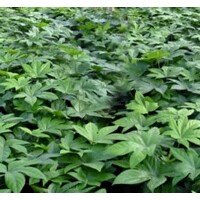 八角金盤(pán) 高度:40-50公分 冠幅:30-40公分 八角金盤(pán) 別名:八金盤(pán)、八手、手樹(shù)、金剛纂 科屬:五加科八角金盤(pán)屬 習(xí)性:喜溫暖濕潤(rùn)環(huán)境,耐陰性強(qiáng),也較耐寒;怕干旱,適宜生長(zhǎng)于肥沃疏松而排水良好的土壤中。 形態(tài)特征:常綠灌木。葉大,掌狀,5—7深裂,厚,有光澤,邊緣有鋸齒或呈波狀綠色有時(shí)邊緣金黃色,葉柄長(zhǎng),基部肥厚。傘形花序集生成頂生圓錐花序,花白色。 園林應(yīng)用:綠葉大而光亮,托以長(zhǎng)柄,狀似金盤(pán),是重要的觀葉樹(shù)種之一。適配植于庭前、門(mén)旁、窗戶(hù)、欄下、墻角及建筑物背陰面,點(diǎn)綴于溪流、池畔,或成片叢植于草坪邊緣,疏林之下??苟趸虻哪芰^強(qiáng),供廠礦、街道綠化。