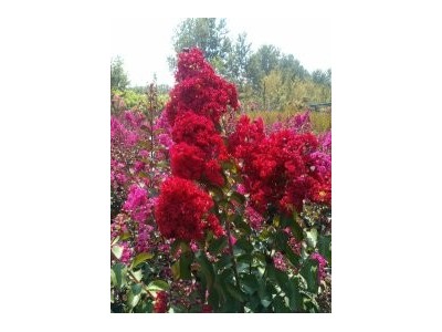 紅火球紫薇介紹 新葉深紅色,老葉綠色。7月初始花,花期可達(dá)4月,花鮮紅色,儼如一團(tuán)火球。花在晴熱天為猩紅色,多云涼爽天氣則為亮紅色,有時(shí)還帶有白色的邊,美麗多彩,是極其少見(jiàn)的大紅紫薇品種:花后及時(shí)修剪,可多次開(kāi)花。耐旱,可耐-23℃的低溫,抗病性較強(qiáng)。是制作盆景、樁景的良好材料,可孤植或叢植。