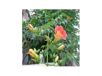 美國凌霄有很強(qiáng)的攀援能力,養(yǎng)花者常制作起花架或供其垂直攀援綠化用的材料。在陽臺(tái)或西曬墻面攀援生長,既可美化環(huán)境,又可遮擋夏日強(qiáng)烈的陽光,降低室內(nèi)溫度。此花也適宜作為盆栽觀賞,為取得良好的觀賞效果,可用竹木等材料構(gòu)筑成各種圖形或動(dòng)物形狀,然后在生長過程中對(duì)其枝蔓作必要的扶持、導(dǎo)向和固定,使之按人的意愿攀援而上,可以生長成很美的形體。如作自然懸垂栽培,讓植株從高處垂掛而下,長成后碧葉橙花,隨風(fēng)搖曳,也別有情趣。