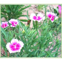 地被石竹原產(chǎn)西伯利亞,是石竹科、石竹屬多年生草本植物。其植株叢生,莖匍匐狀,葉長(zhǎng)5cm,高0.1-0.2cm,深綠色,光滑稍具白粉,傘狀花序頂生,花色有深紅、深粉、白、復(fù)色等。其成苗高度在10cm以下,花開時(shí)25cm左右,它喜光、耐寒、耐旱、耐瘠薄,零下35℃可露地越冬,PH值6.5-7.5的土質(zhì)均可生長(zhǎng),是不可多得的開花常綠地被。