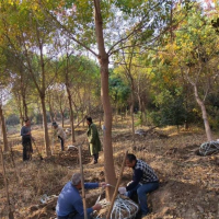 【烏桕種植管理】移栽時(shí)須帶土球,土球直徑35至50厘米。因城市中土壤條件較差,栽植時(shí)要堅(jiān)持大塘淺栽,挖1米×1米×1米的大塘,清除塘內(nèi)建筑碴土等雜物,在塘底部施入腐熟的有機(jī)肥,回填入好土,再放入苗木,栽植深度掌握在表層覆土距苗木根際處5至10厘米。栽后上好支撐架,再澆一次透水,三天后再澆一次水,以后視天氣情況和土壤墑情確定澆水次數(shù)一般10天左右澆一次水。