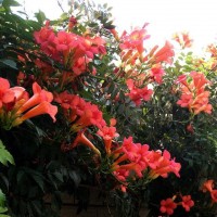 【四季凌霄園林應用】點綴于假山間隙,繁花艷彩,更覺動人;經(jīng)修剪、整枝等栽培措施,可成灌木狀栽培觀賞;管理粗放、適應性強,是理想的城市垂直綠化材料。