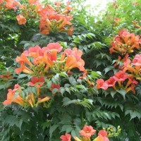 【四季凌霄種植管理】在養(yǎng)護中要加強修剪和整形,主要在入冬花謝后進行,對所有的側(cè)枝進行短剪,促使萌發(fā)更多的新側(cè)枝。夏季可進行摘心,使養(yǎng)分集中供應花芽分化。